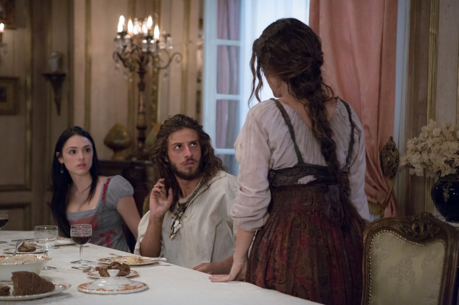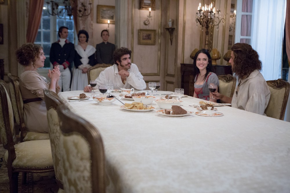 #Annaquim está jantando com Leopoldina (Letícia Colin) e Dom Pedro (Caio Castro), quando o índio guerreiro faz um convite para o casal real. "Aproveitando, eu e Anna gostaríamos de convidar vocês dois para serem nossos padrinhos", diz ele.