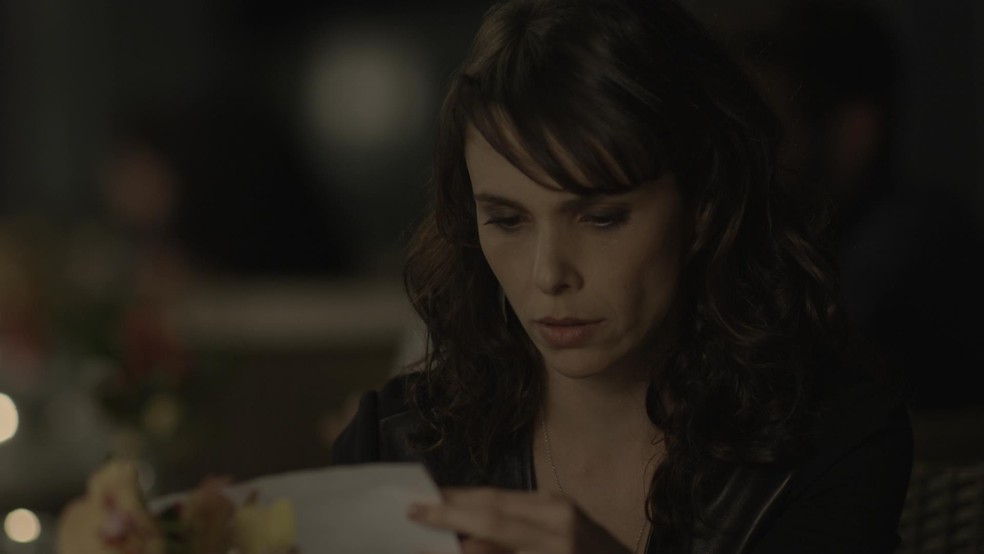 A vilã encontra a arquiteta em um bar e mostra resultado do exame