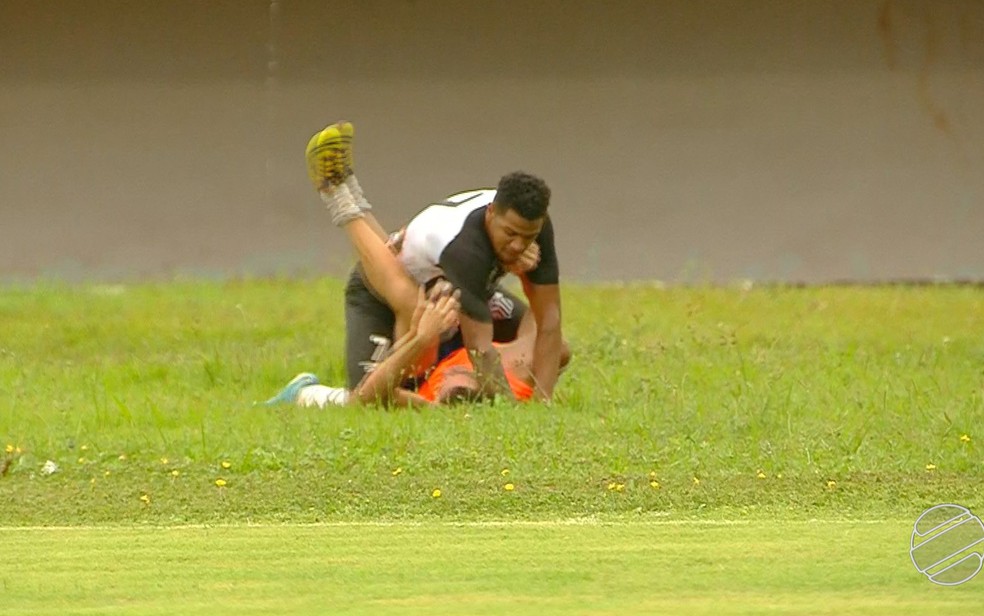 Gandula e jogador da base do Comercial, Tadeu Francisco Kutter Júnior foi espancado pelo jogador Jeferson Reis (Foto: Reprodução/TV Morena)