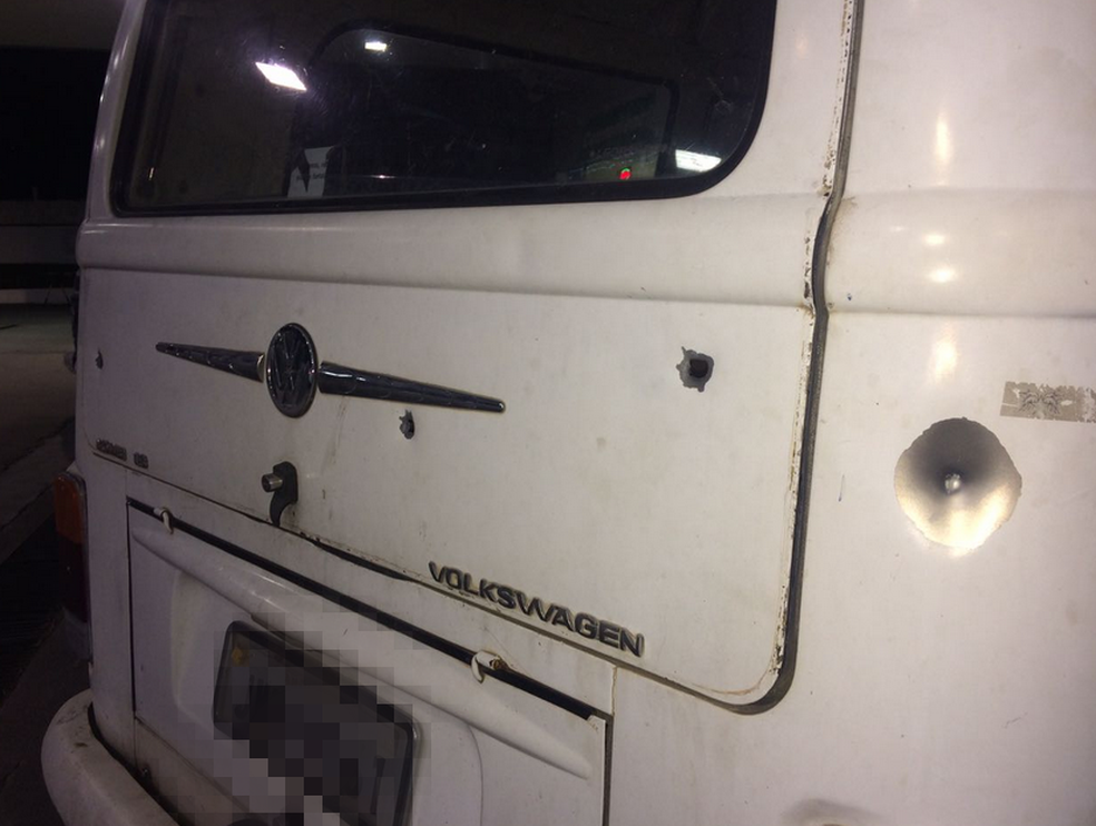 Pelo menos cinco tiros atingiram kombi (Foto: Rickardo Marques/G1)