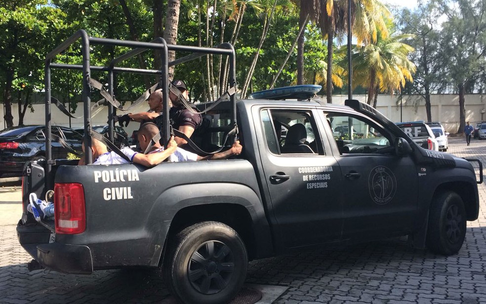 Presos chegaram por volta das 9h na Cidade da Polícia, no Jacaré (Foto: Fernanda Rouvenat / G1)