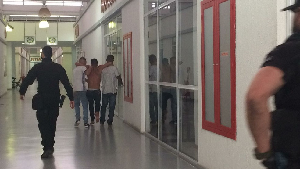 Presos estão sendo levados para a Cidade da Polícia, na Zona Norte do Rio (Foto: Fernanda Rouvenat / G1)