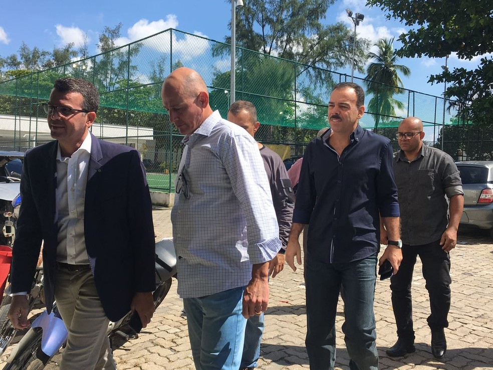 Secretário de Segurança Pública do Rio, Richard Nunes, e Chefe de Polícia Civil, Rivaldo Barbosa, chegaram na Cidade da Polícia por volta das 10h30 deste sábado (7) (Foto: Fernanda Rouvenat / G1)