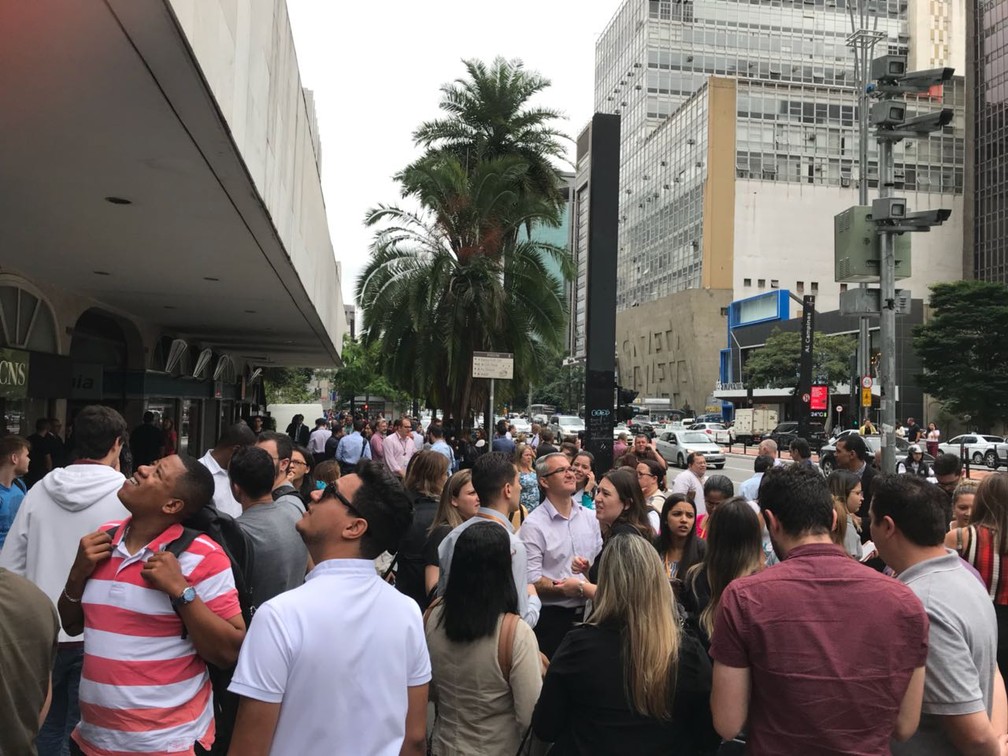 Pessoas deixam prédios na Paulista, em São Paulo (Foto: Rafael Alcadipani/Arquivo Pessoal )