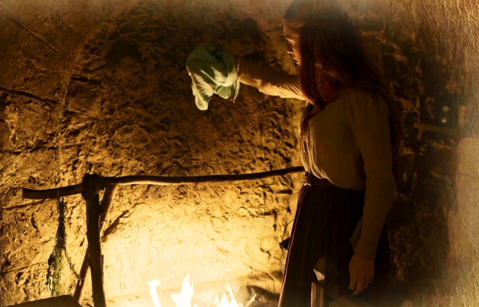 Levi (Tobias Carrieres) percebe que Amália (Marina Ruy Barbosa) está empenhada em esculpir uma nova faca. Depois de muito trabalho, a plebeia finalmente conclui o seu trabalho.