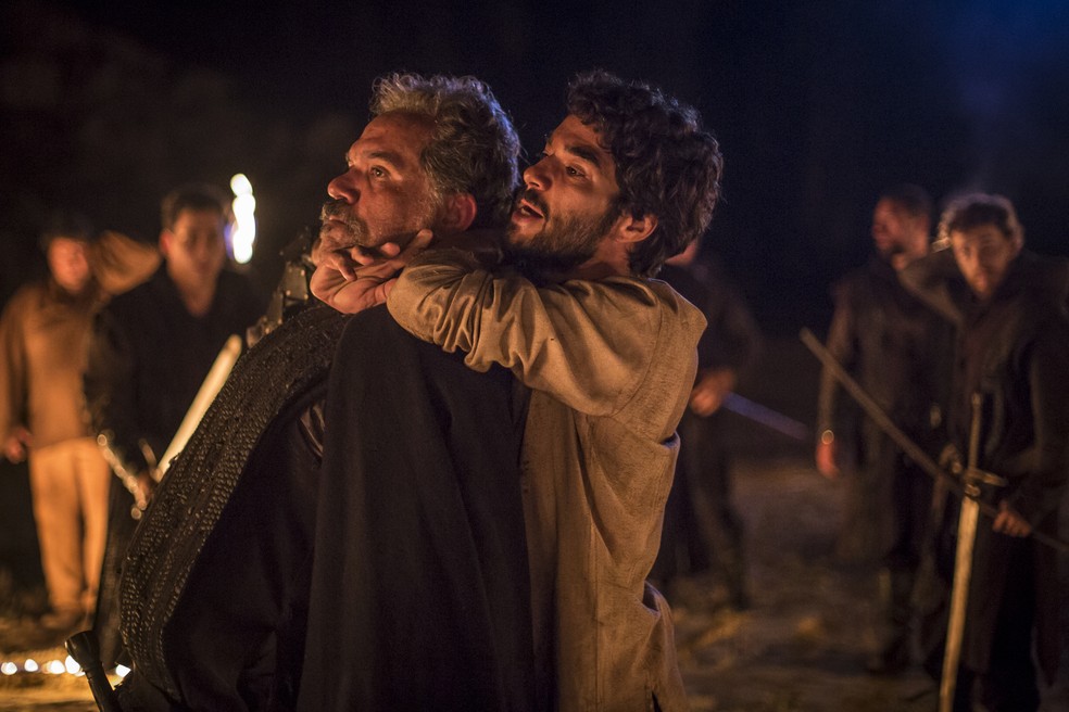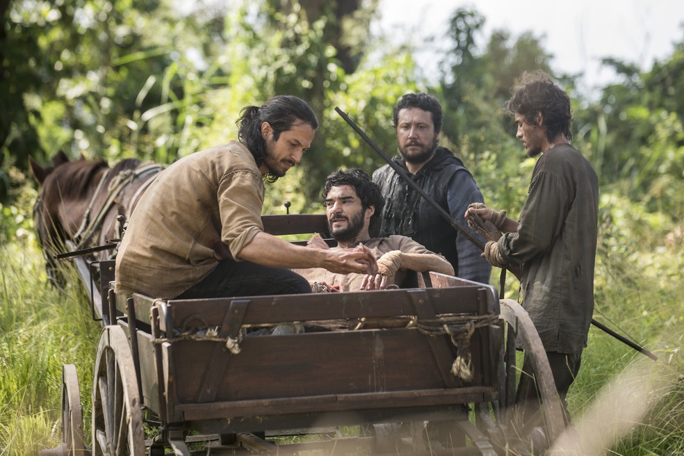 Durante a fuga da Pedreira de Angór, um dos guardas da entrada principal da prisão mira em Afonso (Romulo Estrela) enquanto eles partem na carroça. Para proteger o amigo, Cássio (Caio Blat) entra na frente e acaba levando uma flechada na altura do fígado! Veja detalhes no vídeo! 🎥
